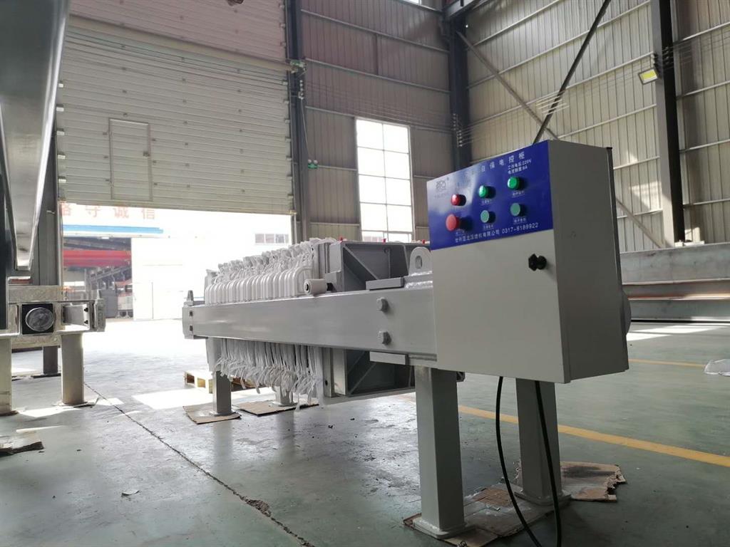 在安裝前,隔膜壓濾機應找平,各個安裝基準面水平度誤差≯2mm。在安裝油缸支座時,用墊板找平,兩支座上平面在同一水平面上,油缸與支座間的螺栓不上緊,再將油缸裝于油缸支座上,地腳螺栓上緊。在安裝尾板時,吊正尾板(用鋼絲繩吊尾板中心孔)將尾板與主梁進行連接。