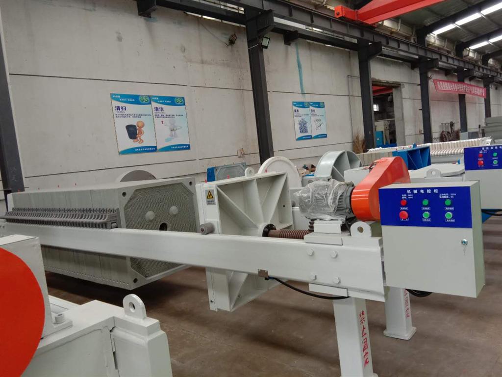 為了解決這個問題,好的措施是:濾板數_過80塊以上的板框壓濾機,其止推板應采用自由回轉的結構,對于濾板數較少的板框壓濾機,卸料時應注意減少濾板下部壓緊面上的殘留濾餅量,—旦濾板集合體呈明顯的梯形狀態(tài),_應該沖洗濾板,將殘留濾餅清理干凈。