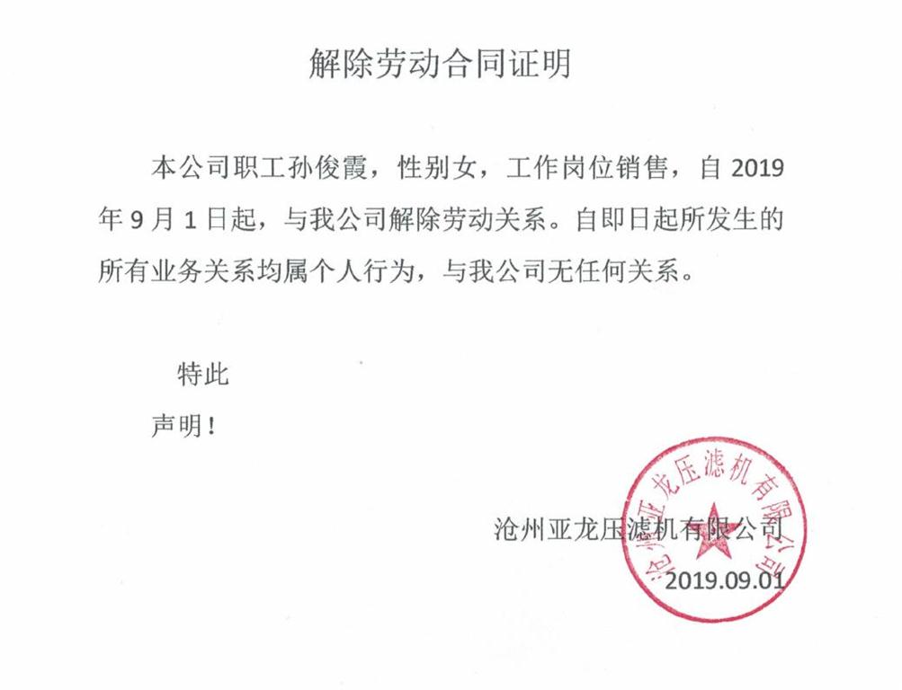公司名稱:滄州亞龍壓濾機(jī)有限公司 公司地址:河北省南皮縣付莊工業(yè)開發(fā)區(qū) 電話:0317-8189922 傳真:0317-8189923