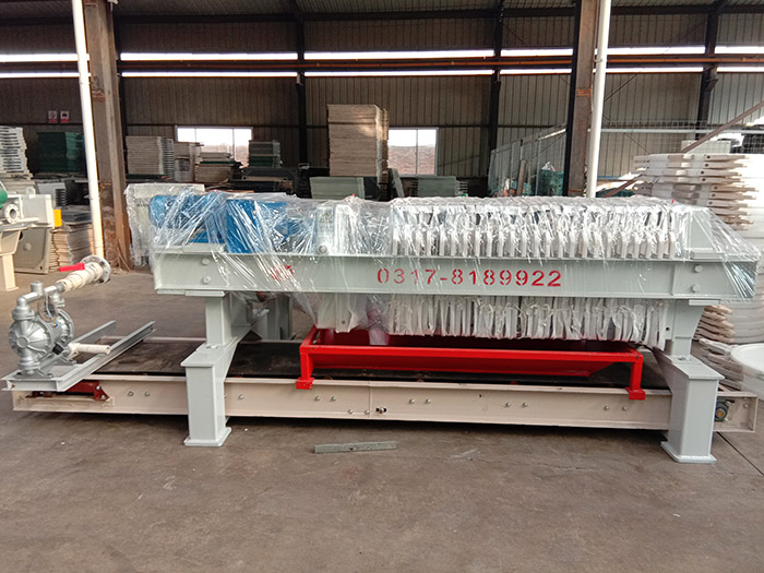 壓緊濾板時(shí),首先用手扳動(dòng)絲杠手輪,使頭板前進(jìn),待濾板初步壓緊后改用液壓頂緊,隔膜壓濾機(jī)當(dāng)壓力達(dá)到20MPa時(shí)停止加壓,并用緊固鎖緊螺母(但_注意,壓濾機(jī)濾板保護(hù)與替換液壓頂緊行程不得_過50mm,如行程已到50mm,但壓力仍未達(dá)到20MPa時(shí),可松開液壓系統(tǒng),重新扳緊絲杠后,再行加壓。反之則可松開濾板。